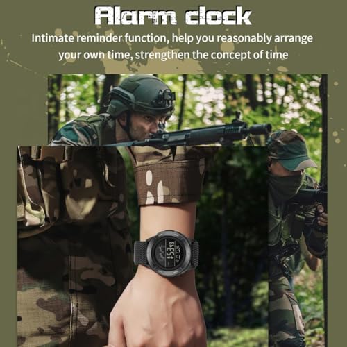 • Waterproof Watch: The tactical watch with 50M water-resistant rating, withstand swimming, washing hands, cold bath and rains, allowing you to wear it confidently in everyday and army field outdoor occasion without fear of damage. Please keep away hot water or steam.